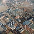 Een luchtfoto met in het midden bouwmaterialenhandel de Steenbok in Reuver. Steenbok Holland is producent van wand- en vloertegels alsmede getrommelde mozaïeken.Het bedrijf startte in 1957 met de productie van vloertegels. In 1994 ging het bedrijf failliet als gevolg van overproductie in de Europese vloertegelindustrie en werd overgenomen door KORAMIC. De heer Nick Wesselmans was destijds de eigenaar van het bedrijf. Rechtsbeneden zien we de Jalema en wat meer naar boven de Mariastraat. |