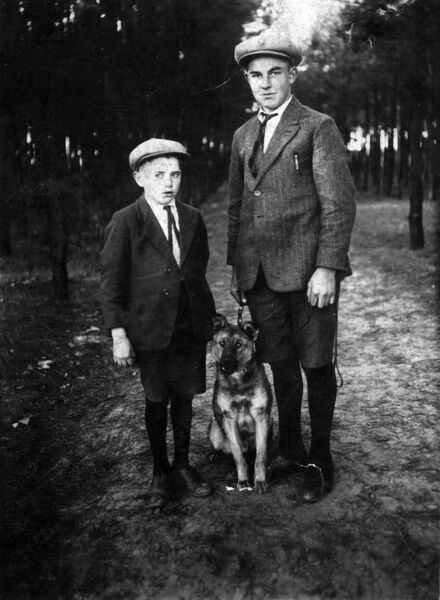 Onbekend vader en zoon samen met hun hond. Wie herkent hen? |