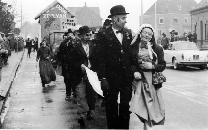 Carnaval | Jan van de Sterren en gezelschap tijdens de carnavalsoptocht. | Rijksweg 43 | Reuver | 1958 | ||||