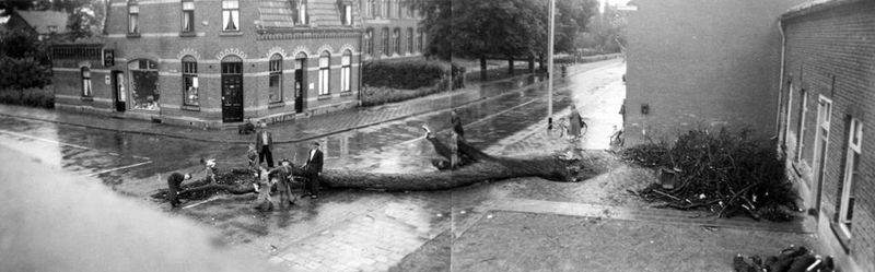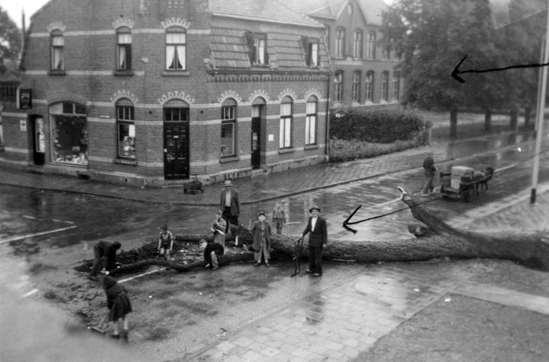 Boom kappen voor het oude patronaatsgebouw. De man voor de boom met de zaag is ‘Niemans Naedje’ |