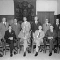 Gemeentehuis / Gemeentebestuur | Gemeenteraad Beesel in 1956. Boven van links naar rechts: Levels, C. Vaassen, Janssen, J. Laumans, Al Koch, J. Cremers, H. Geraets, F. Heldens. Beneden van links naar rechts: R. Hover, P. Vintcent, J. Peeters, burgemeester Hendrix, W. Thijssen, Smeets. | Rijksweg 41 | Reuver | 1956 | ||||