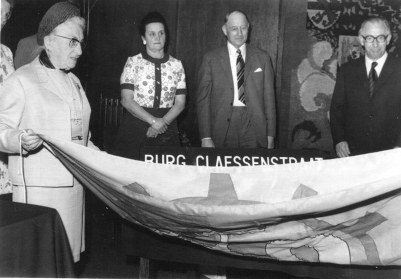 Gemeentehuis / Gemeentebestuur | Onthulling straatnamen van oud-burgemeesters op 27 mei 1974. Links burgemeester Hendrix. | Rijksweg 41 | Reuver | 27-5-1974 | 1974 | |||