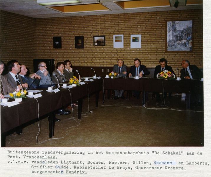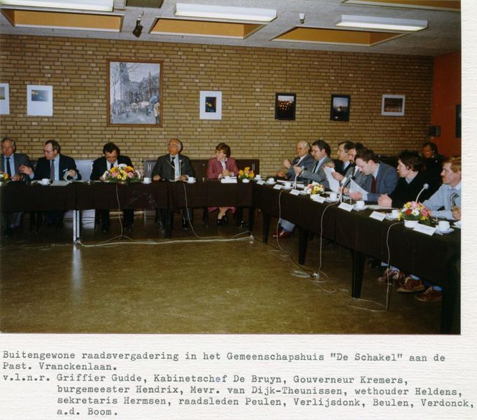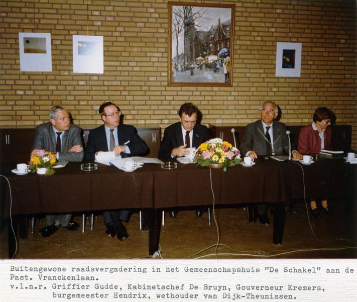 Gemeentehuis / Gemeentebestuur | Bezoek minister W.V.C., L.C. Brinkman, aan gemeente Beesel. | Raadhuisplen 1 | Reuver | 22-1-1986 | 1986 | |||