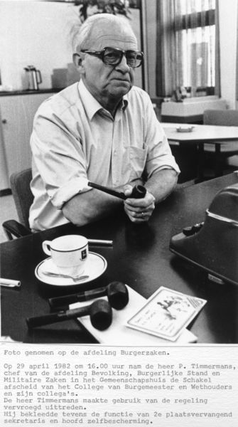 Gemeentehuis / Gemeentebestuur | Afscheid dhr. P. Timmermans. | Raadhuisplein 1 | Reuver | 29-4-1982 | 1982 | |||