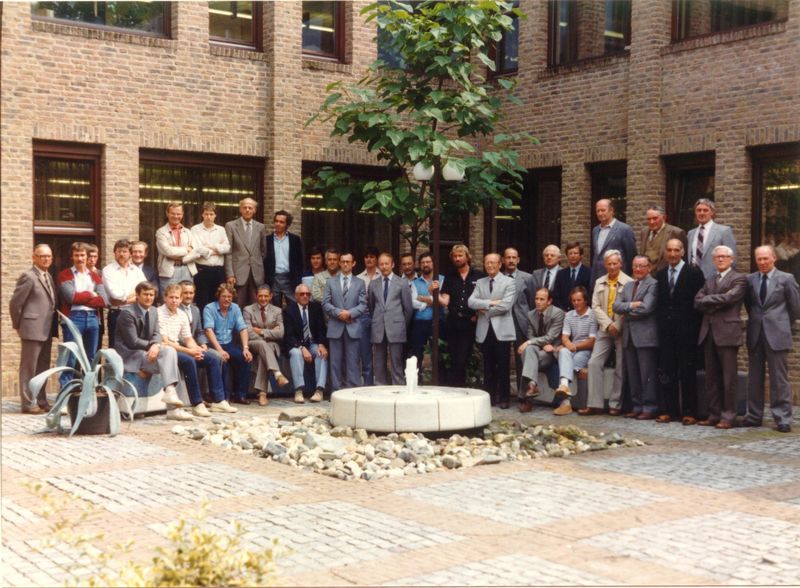 Personeel van de afdeling Grondgebied. De foto werd genomen ter gelegenheid van het afscheid van de heer J.H. Levels. Levels was de eerste kantonnier die met pensioen ging. Hij was werkzaam bij de gemeente Beesel van 1-4-1944 tot 22-6-1982. Bij zijn afscheid ontving hij uit handen van burgemeester Hendrix de bronzen erepenning van de gemeente Beesel. Staande van links naar rechts: 1 J.Smits, 2 M. Muisers, 3 P. van Kessel, 4 P. Schouren, 5 G. Hagens, 6 C Janssen, 7 H. Kanders, 8 J. Vreugt, 9 H. Meer ... |