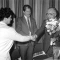 Op 30 december 1982 werd er in een buitengewone besloten vergadering afscheid genomen van gemeentesecretaris Hover. v.l.n.r. mevr. Hover, secretaris Hover, burgemeester J.T. Hendrix, wethouders van Dijk en Heldens. |