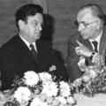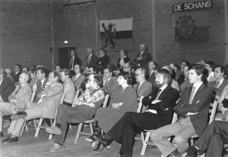 Officiële opening sporthal de Schans. Op de foto wordt de bedenker van de naam "De Schans", dhr. Janssen, bedankt. |