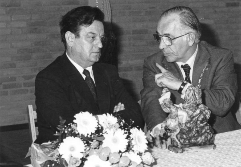 Officiële opening sporthal de Schans. Op de foto wordt de bedenker van de naam "De Schans", dhr Janssen, bedankt. |