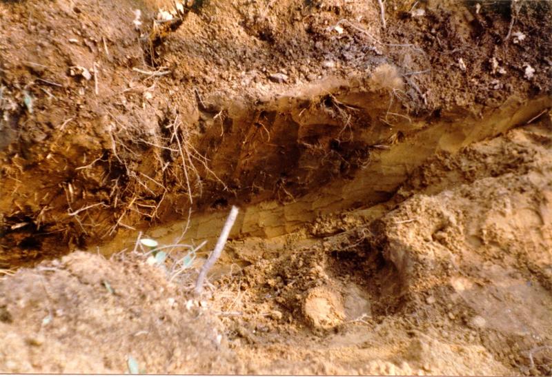 Archeologie | Proefopgraving van een Romeinse villa bij de Solberg (aan de Bovenste Solbergweg) 1978. Dwarsdoorsnede van vermoedelijke afvalput. Gevonden voorwerpen o.a. aardewerkscherven, bronsrestjes, kraal, spijkers etc. | Bovenste Solbergweg | Beesel | 1978 | ||||