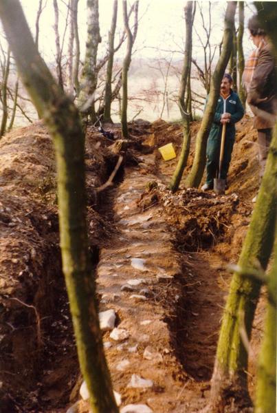 Archeologie | Proefopgraving van een Romeinse villa bij de Solberg (aan de Bovenste Solbergweg) 1978. Fundament van de zuid-west-zijde, bestaande uit maaskeien en basalt. (+/- 10 meter) | Bovenste Solbergweg | Beesel | 1978 | ||||