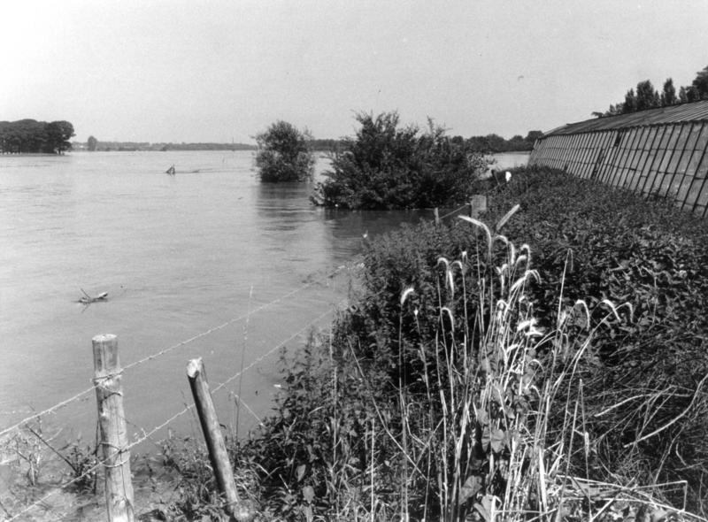 Gebeurtenissen | Als gevolg van hevige regenval in juli 1980 trad de Maas buiten haar oevers. Voor zover bekend bereikte de Maas de hoogste waterstand in de zomer. Het water is de tuinbouwkassen genaderd van de familie Bouten, Ouddorp 9. | Ouddorp 9 | Beesel | 1980 | ||||
