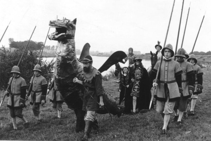 Draaksteken | Draaksteken Beesel 1946. Draaksteken. Legendarisch spel dat om de 7 jaar door de inwoners van Beesel wordt opgevoerd. | Kasteel Nieuwenbroeck 2 | Beesel | 1946 | ||||