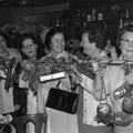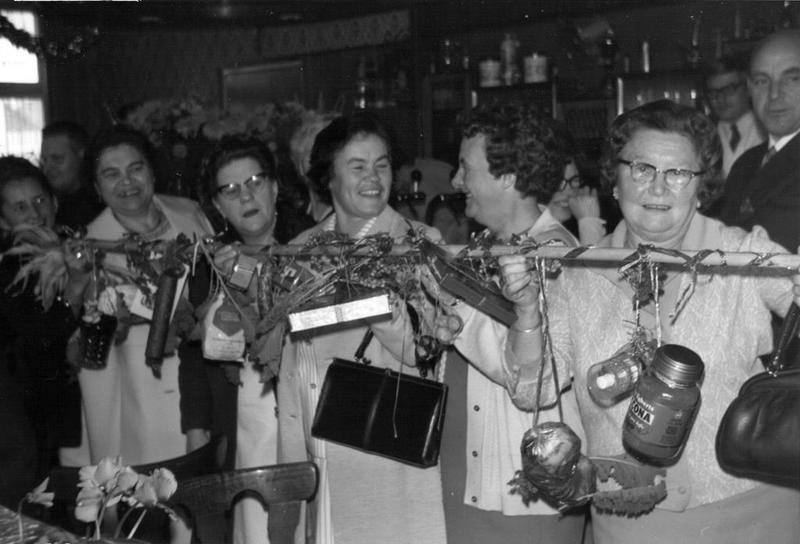 De dames dragen de etenswaren tijdens de boerenbruiloft in Offenbeek. Van link naar rechts: 1 Mien Gubbels, 2 Claar Niessen, 3 Ann Peulen - Geijzen, 4 Maria Verstappen, 5 Marie Strijbos, 6 Marie Teunissen. |