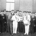 Wandelvereniging "Het Haasje". In de jaren dertig heeft in Reuver een wandelclub bestaan, die werd opgericht door de heren Heesen en Schweitzer. De club bestond uit een aparte dames- en herenafdeling. op de foto zien we van links naar rechts. : 1 Schweitzer (de oprichter), 2 Hannie Houba, 3 Frans Litjens, 4 Pie Teunissen, 5 Sef Reijnen, 6 Harrie Litjens, 7 Heesen, 8 Wim Huijbers, 9 NN, 10 Frans Wijnands, 11 Frans Litjens, 12 NN, 13 Toon Heesen, 14 NN, 15 Sef Litjens, 16 NN, 17 Lei Peeters, 18 Meer ... |