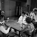 De WAO groep aan het kaarten in de Schakel. Met Martha Verstappen, Piet Verstappen (voorzitter WAO groep), Harm Janssen, John Janssen en G.J. Timmermans. |