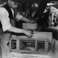 Fabrieken / Bedrijven | Sjra Willemsen bezig met het maken van hulpstukken in de gresbuizenfabriek van Teeuwen. | Keulseweg 36 | Offenbeek | 1946 | ||||
