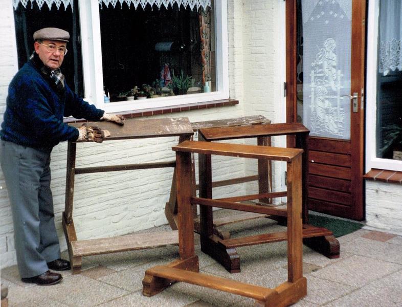 Kruisen & kapellen | De oude knielbankjes worden door Paul Dautzenberg van de werkgroep kruisen en kapellen opgeknapt om weer dienst te doen in de Mariakapel. | Onderstehofweg | Offenbeek | 1988 | ||||