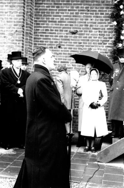 Op 28 maart 1950 vierde pastoor Gerard Stoot zijn zilveren priesterfeest in Reuver. Kapelaan L. Dirix spreekt de pastoor toe. |