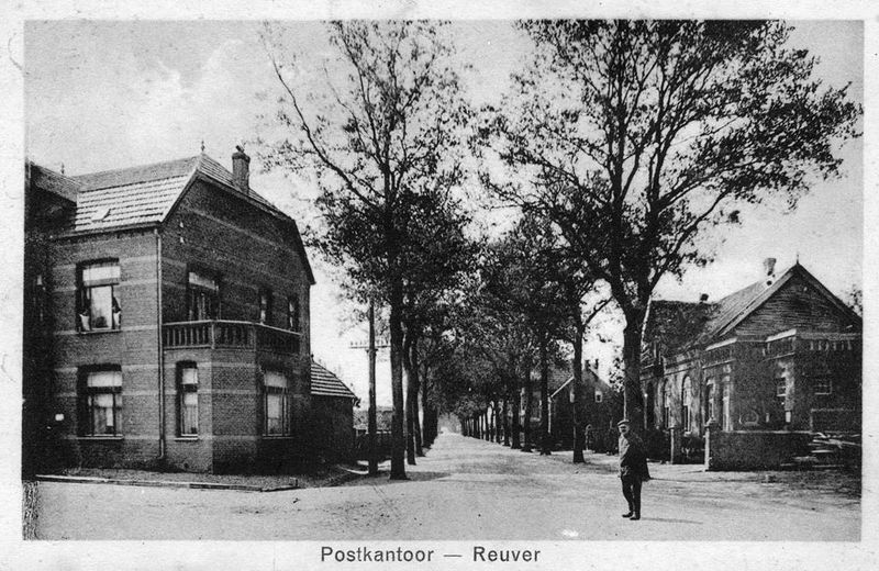 Wegen | Prentbriefkaart met de kruising Rijksweg - Stationstraat en rechts het oud postkantoor met aan de noordzijde een in 1910 gebouwde ingang met telefooncel gebouwd in 1890 door A.A. Roeffs. Links de villa van Hendrik en Hubert Trienekens, pannenfabrikanten en gemeenteraadsleden. | Rijksweg 14 | Reuver | 1925 | ||||