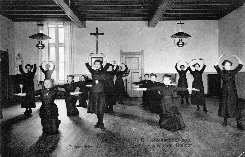 Onderwijs | De kwekelingen van de Kweekschool in Reuver tijdens de gymles. | Pastoor Vranckenlaan 4 | Reuver | 1915 | ||||