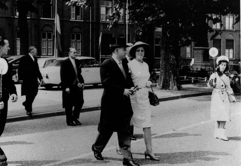 Diversen | Burgemeester Hendriks bij het oversteken van de Rijksweg met behulp van een klaar-over. Achter de burgemeester loopt Rein Hover (gemeente secretaris) | Rijksweg 32 | Reuver | |||||