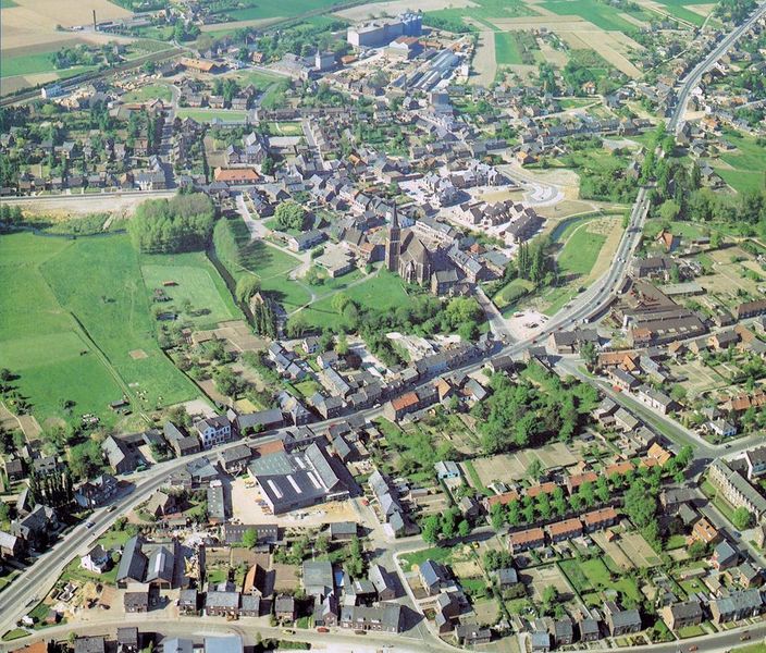 Luchtfoto's | Een luchtopname van Swalmen met in het midden de kerk en de Rijksweg die door Swalmen loopt. | Brugstraat | Swalmen | 1978 | ||||