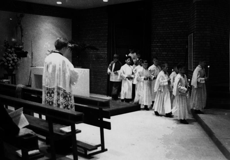 Kerk en religie | Beelden van de heilige mis ter ere van de inzegening van de Fatimakerk. | Pater Claretstraat 2 | Offenbeek | 13-12-1964 | 1964 | |||