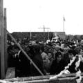 Kerk en religie | Het toegestroomde publiek kijkt mee hoe de eerste steen gelegd wordt in de Fatimakerk. | Pater Claretstraat 2 | Offenbeek | 13-10-1963 | 1963 | |||