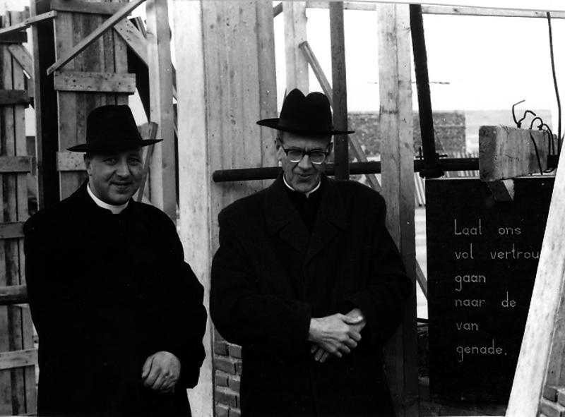 Kerk en religie | De eerste steen van de Fatimakerk wordt gelegd door Mgr. van Odijk. | Pater Claretstraat 2 | Offenbeek | 13-10-1963 | 1963 | |||