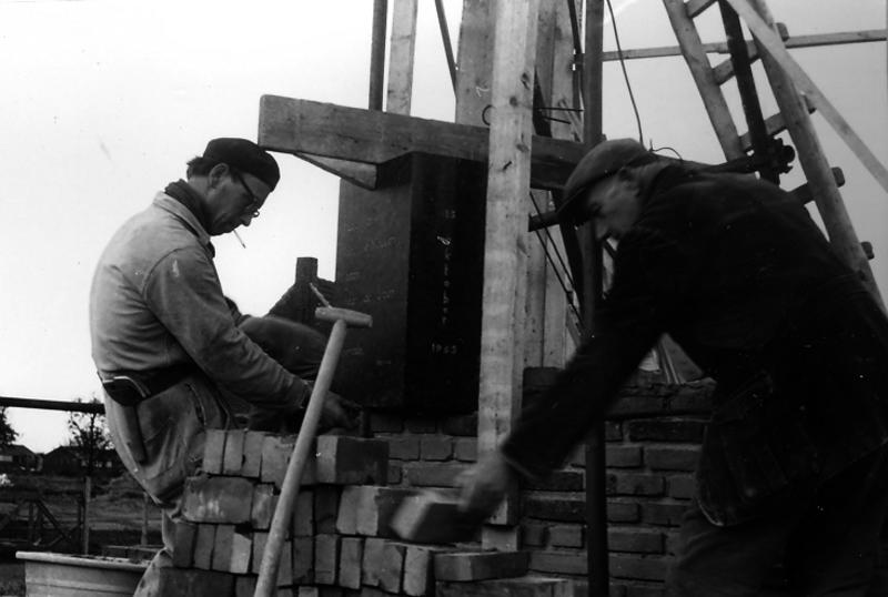 Kerk en religie | De eerste steen van de Fatimakerk zit op zijn plek en moet nog worden ingemetseld. | Pater Claretstraat 2 | Offenbeek | 13-10-1963 | 1963 | |||