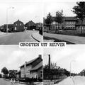 Prentbriefkaart met diverse straten in Reuver. We zien onder andere de Gouverneur van Hövellaan, de Rijksweg en de Pastoor Rijnderslaan. |