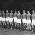 Het eerste elftal van voetbalvereniging V.V. Reuver in 1955.