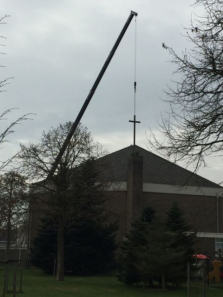 Het kruis wordt van de Fatimakerk gehaald in Offenbeek.