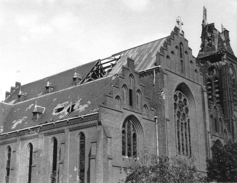 De Lambertus kerk hoek Past. Vranckenlaan/Karel Doormanlaan na de verwoesting door de oorlog.
