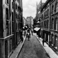 Beeld van de Vleesstraat in Venlo in vroeger tijden.