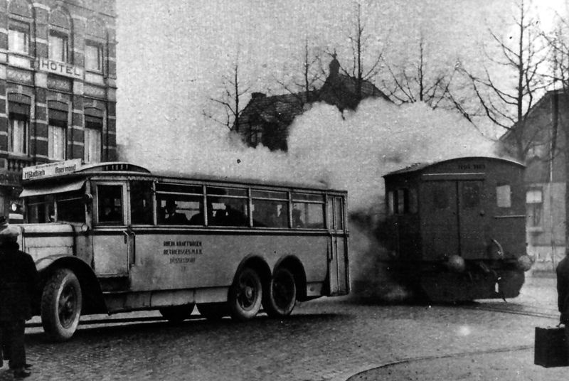De tram naar Vlodrop en Roosteren kruist zijn pad met de bus van Mönchengladbach naar Roermond op het Stationsplein
