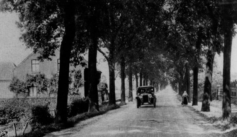 De Rijksweg Noord in Belfeld in de richting van Tegelen. Links de woning van gemeentesecretaris Bos.