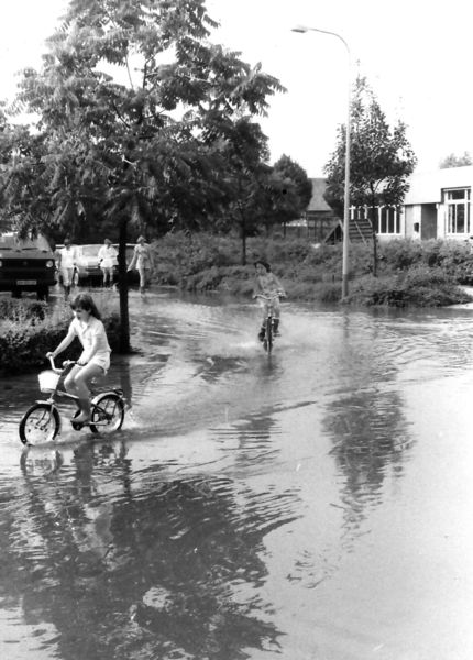 In de zomer van 1987 was de riolering na een stortbui verstopt, in de buurt van de Wildenkampschool. De kinderen hadden er duidelijk veel plezier door.