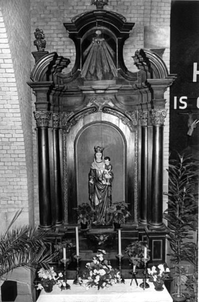 St. Gertrudiskerk Beesel. Foto voor restauratie van het Maria altaar. Begin 1980 werd het Maria-altaar in de kerk van Beesel gerestaureerd. Het Maria-altaar is nog een van de overblijfselen van de oude kerk van Beesel en is volgens pastoor Van Asdonk zeker ouder dan 150 jaar.