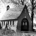 De kapel van Geloë zoals het er tussen 1938 en 1943 uitzag. In 1943 werd de kapel door een bom, welke uit een neerstortend vliegtuig van de geallieerde viel, totaal vernield. Wonder boven wonder bleef het Mariabeeld met het kindje Jezus gespaard (Het kindje miste alleen een stukje van de wijsvinger) .