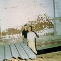 Leo de Jong en Ed Maas bezig met het leggen van de vloer van de kleedkamer in het onderkomen van S.V. Hercules '03