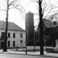 Oud Gemeentehuis Reuver met op de achtergrond de Sint Lambertuskerk nog met stompe toren.