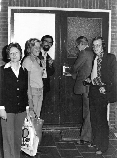 Onderwijzers van de St. Lambertusschool sluiten de deur van de school.
