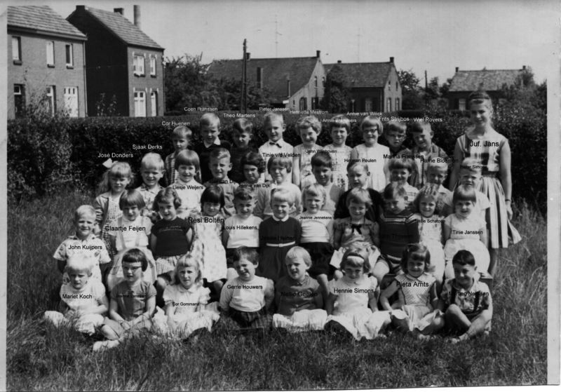 Van links naar rechts: 1ste rij: 1 Mariet Koch, 2 jeanne Janssen, 3 Cor Gommans, 4 Gerrie Houwers, 5 Nellie Geelen, 6 Hennie Simons, 7 Pieta Arnst, 8 Martien Nelissen. 2de rij: 1 John Kuijpers 2 Claartje Feijen, 3 Nellie Reinders, 4 Resi Bolten, 5 Louis Hillekens, 6 Nellie Heinen, 7 Jeanne Jenneskens, 8 Ellie Timmermans, 9 John Thijssen, 10 Nellie Schatorie, 11 Tinie Janssen. 3de rij: 1 José Donders, 2 Sjaak Derks, 3 Liesje Weijers, 4 Peter van Dijk, 5 Tonnie van Dijk, 6 Tinie vd Velden. 7 John Wijnhoven, 8 Herman Peulen, 9 Maria Franssen, 10 Harrie Bloemen, 11 Pieter Simons. 4de rij: 1 Cor Huenen, 2 Coen Franssen, 3 Theo Martens, 4 Pieter Janssen, 5 Henrîette Mestrom, 6 Annie Bremers, 7 Annie van Willick, 8 Frits Strijbos, 9 Wiel Rovers, 10 juffrouw Jans
