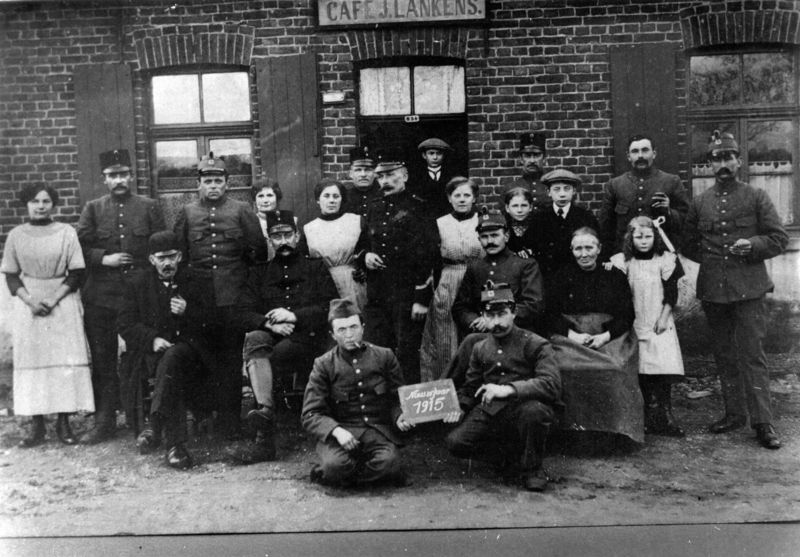 Soldaten van de grensbewaking tijdens de Eerste Wereldoorlog. De foto is genomen bij een café Lankes (vermoedelijk in Venlo).