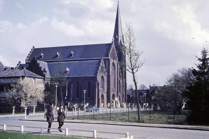 De Sint Lambertuskerk met links de voormalige pastorie.