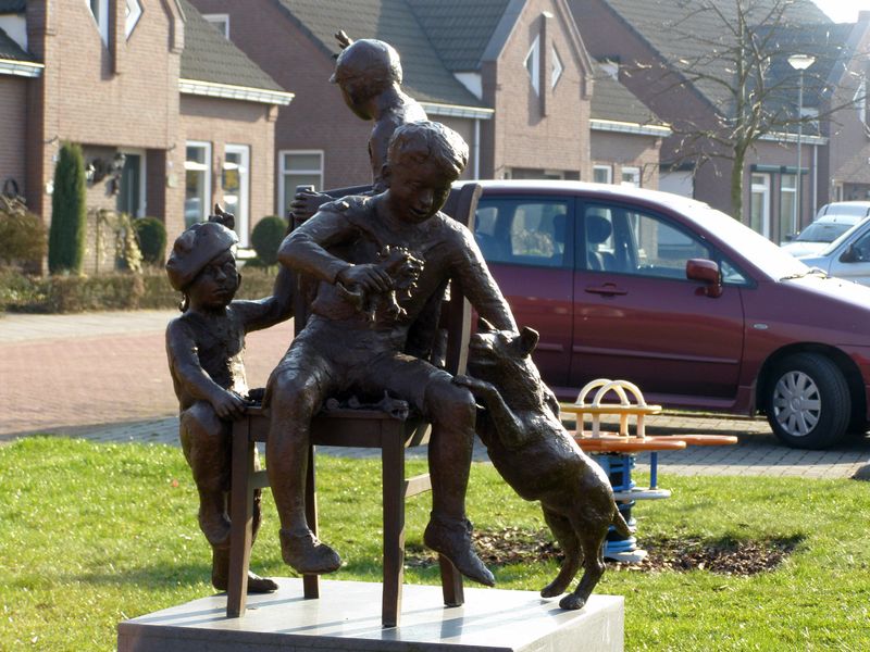 Kunstwerk "Spelende kinderen" op het plein waar vroeger de Sint Jozefschool stond.