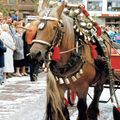De vrijwillige brandweer van Beesel-Reuver organiseerde een demonstratie met oude brandweer apparaten. Hier wordt de wagen voortgetrokken door een paard.