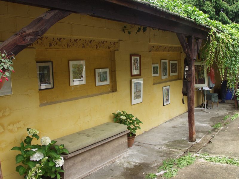 De achterzijde van de Weerterhof waar de wanden zijn versiert met kunstwerken.