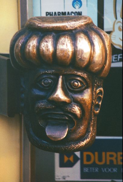De "Gaper" op de deur van drogisterij Cremers aan de Rijksweg in Reuver.